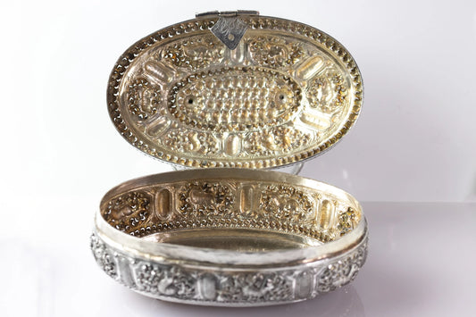 AusverkauftAntike asiatische Silberdose mit Tiermotiven