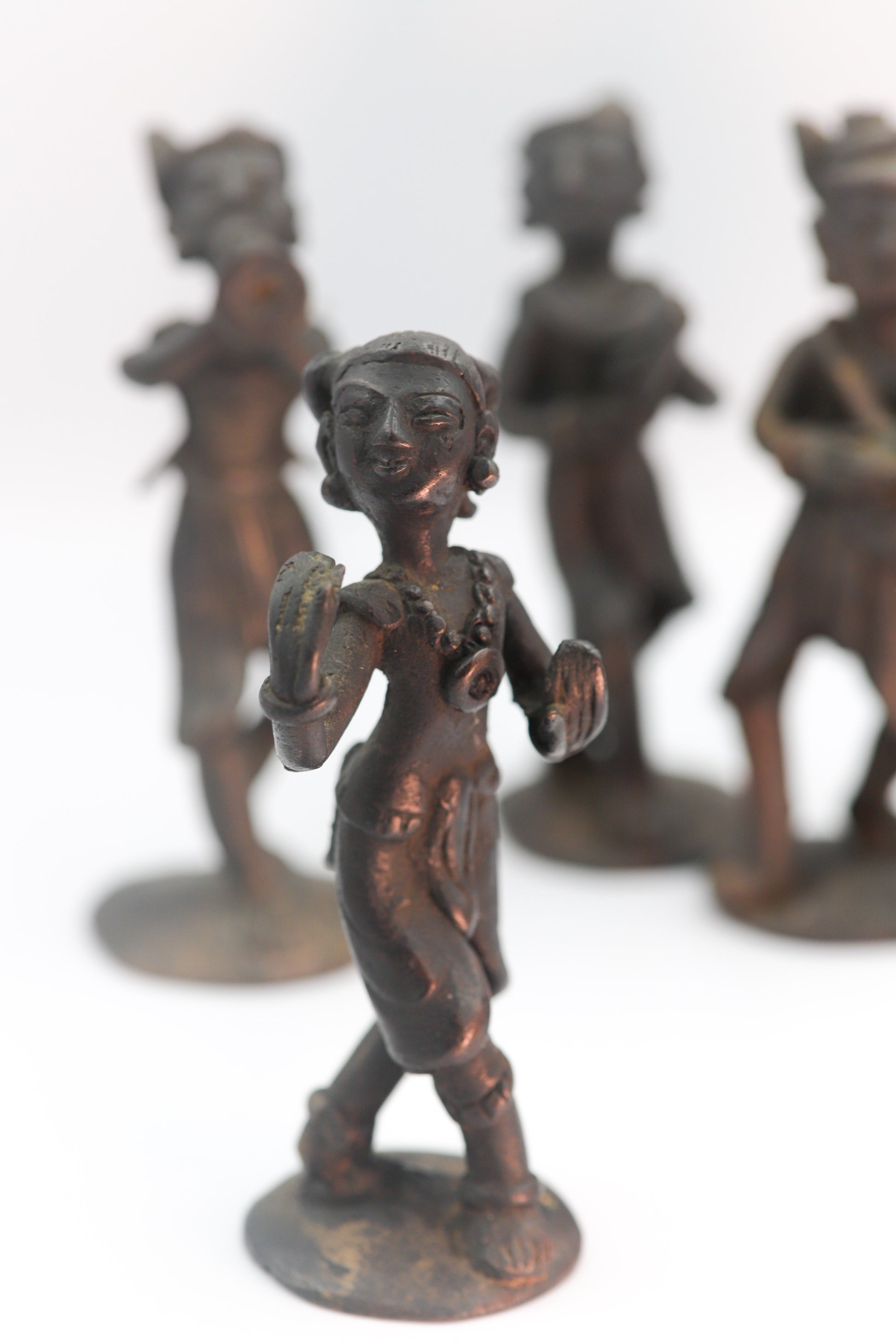 Diese vier handgefertigten Bronzefiguren stammen aus der traditionsreichen Dhokra- bzw. Bastar-Kunst Indiens – einer über 4.000 Jahre alten Metallguss-Technik, die bis heute in kleinen Werkstätten gepflegt wird. Jede Figur ist ein Unikat, liebevoll von Hand gefertigt und zeigt Musiker*innen mit traditionellen Instrumenten – ausdrucksstark, rhythmisch und voller Leben.