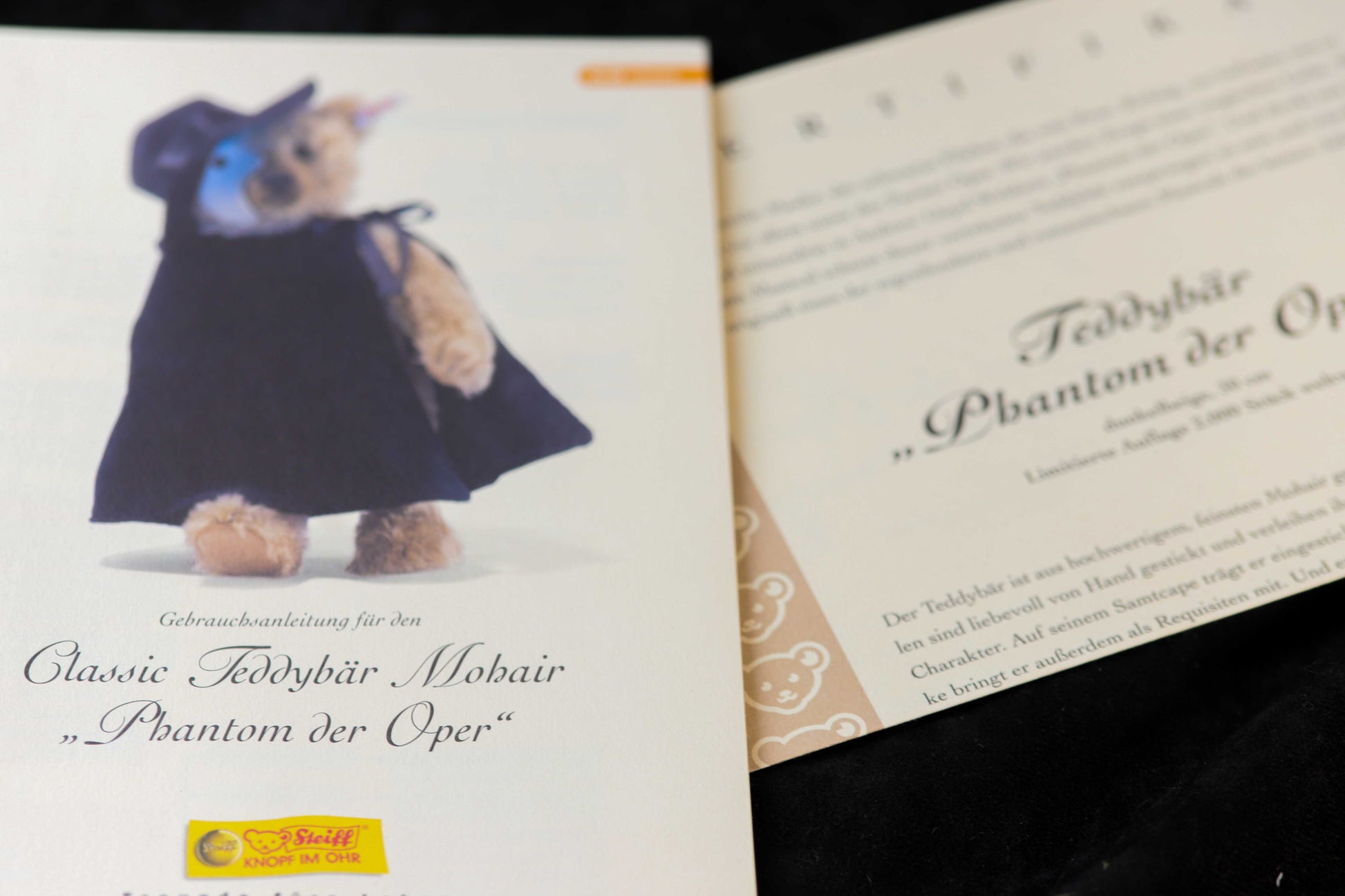 Ein außergewöhnlicher Sammlerbär aus dem Hause Steiff: Das Modell „Phantom der Oper“ verbindet klassische Steiff-Handwerkskunst mit einer ikonischen Figur der Theatergeschichte.